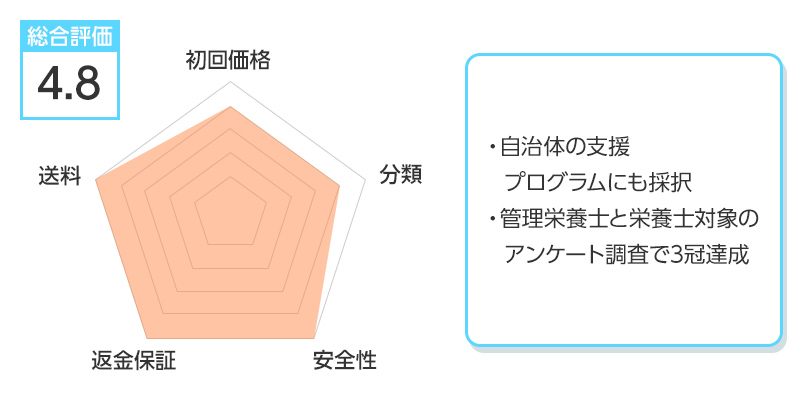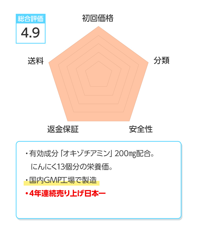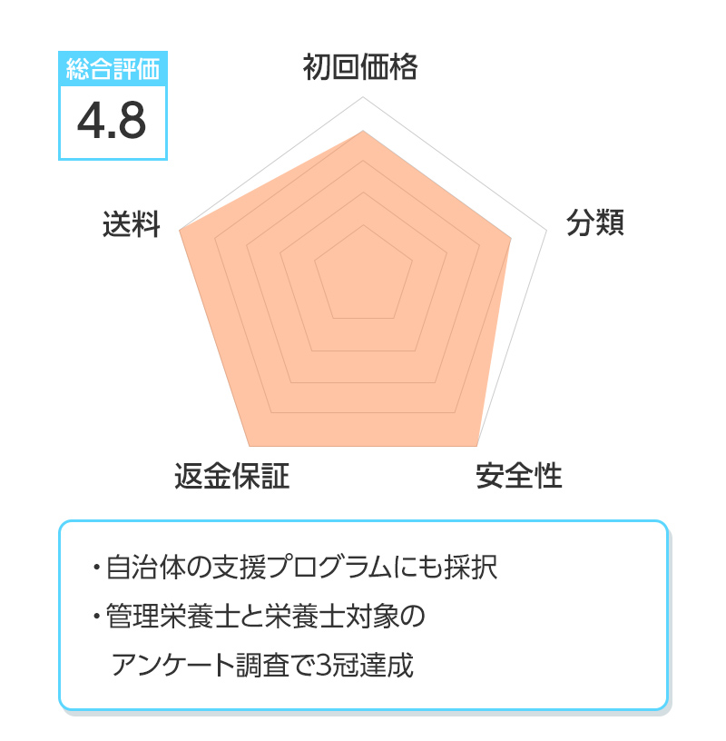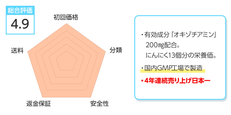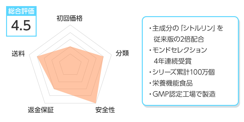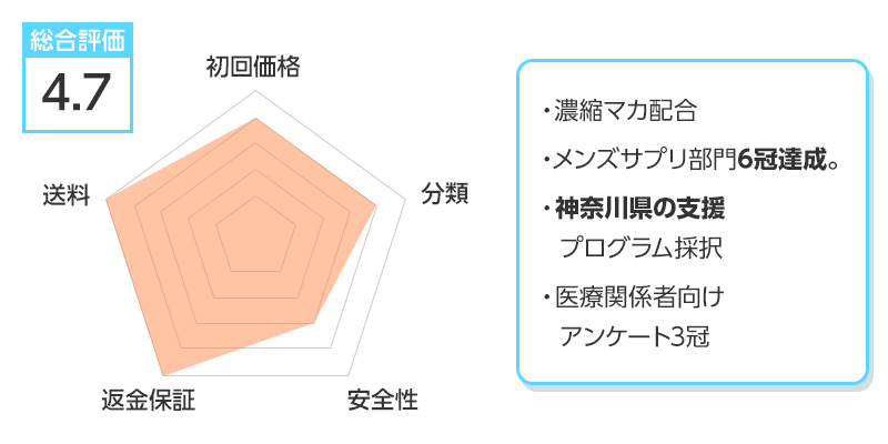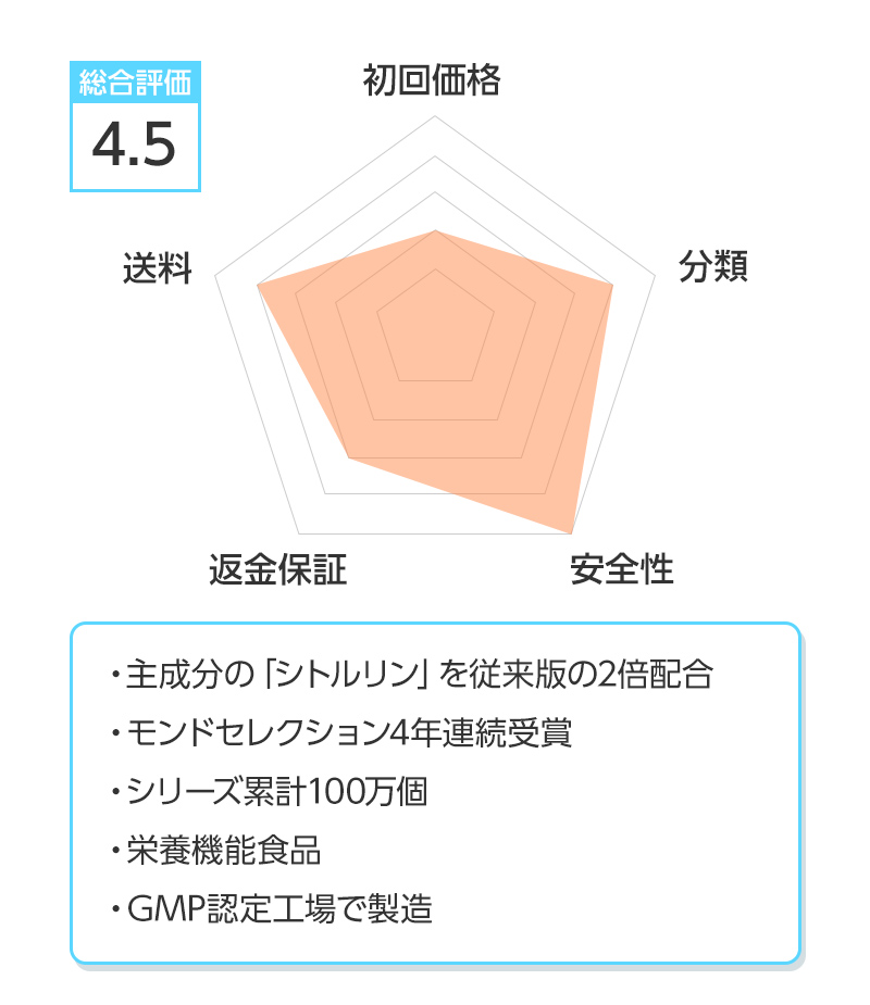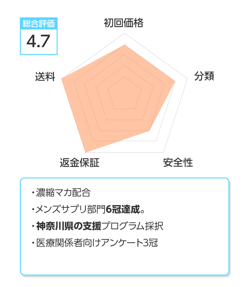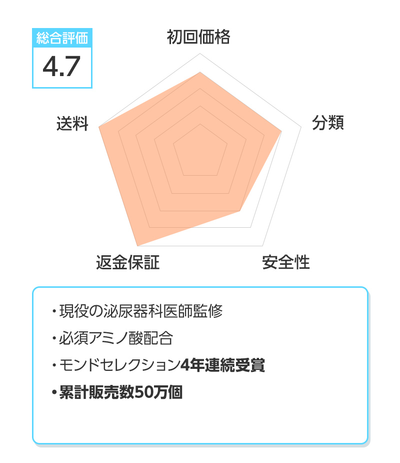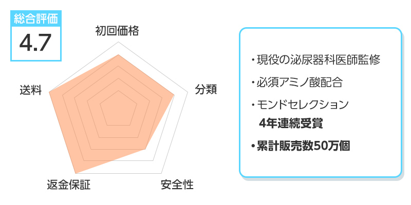 ※総合評価は初回価格、分類、安全性、返金保証、送料を得点化し算出しています。